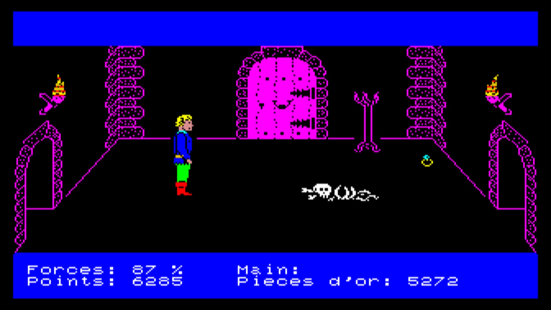 Finir L’Aigle d’Or, même en trichant éhontément et en m’aidant d’une vidéo sur YouTube, m’a rempli d’un certain contentement. Non que je sois fier de mes compétences de gamer, elles n’ont guère été sollicitées, mais parce que j’aurais au moins connu la joie de voir l’écran de fin d’un jeu dont je partais du principe qu’il n’avait pas vocation à être battu, tant il est retors. Le tout en explorant plus en avant ce château dantesque et les mystères qu’il recèle. L’occasion de me rendre compte par moi-même de la richesse et de l’inventivité d’un classique d’entre les classiques, d’autant plus impressionnant qu’il est la création d’une seule et même personne. À savoir le tout jeune Louis-Marie Rocques, futur fondateur de Silmaris, avant de se tourner vers la simulation hardcore avec Eversim et ses Geo-Political Simulator. D’un labyrinthe semé d’embûches à un autre, en somme.